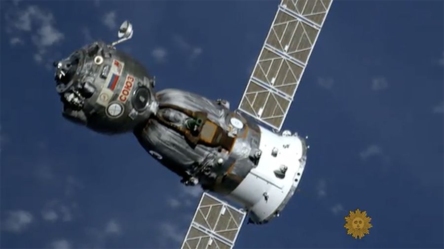 The Soyuz capsule, shown here en route back to earth in 2014, photographed from the space station.