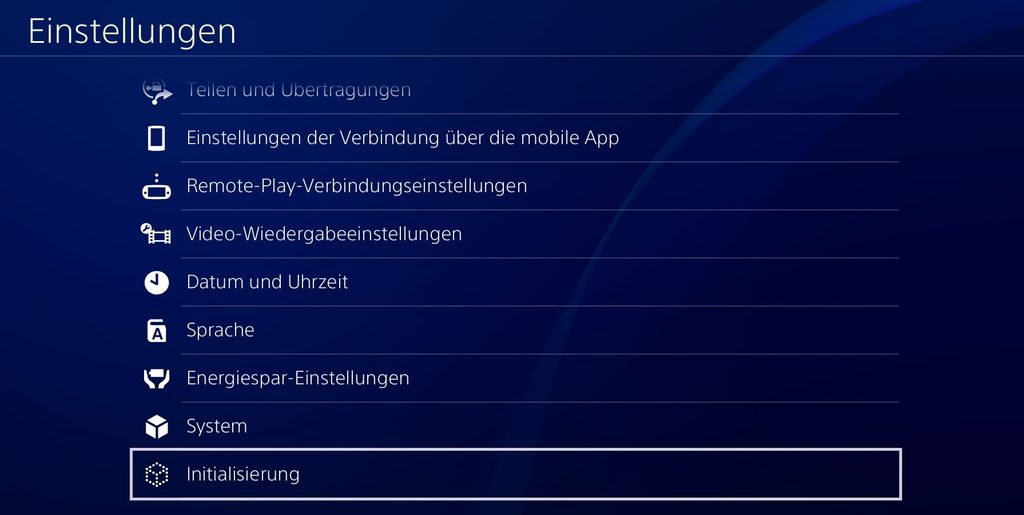 Meldet euch nun von eurem PSN-Konto ab und geht danach in den Einstellungen auf den letzten Punkt Initialisierung. Ihr könnt jetzt zwischen den Optionen Schnell und Voll wählen. Wenn ihr ganz sicher gehen möchtet, dass eure Daten nicht mehr wiederhergestellt werden können, dann wählt Voll. Die Initialisierung kann je nach Datenmenge einige Zeit dauern.