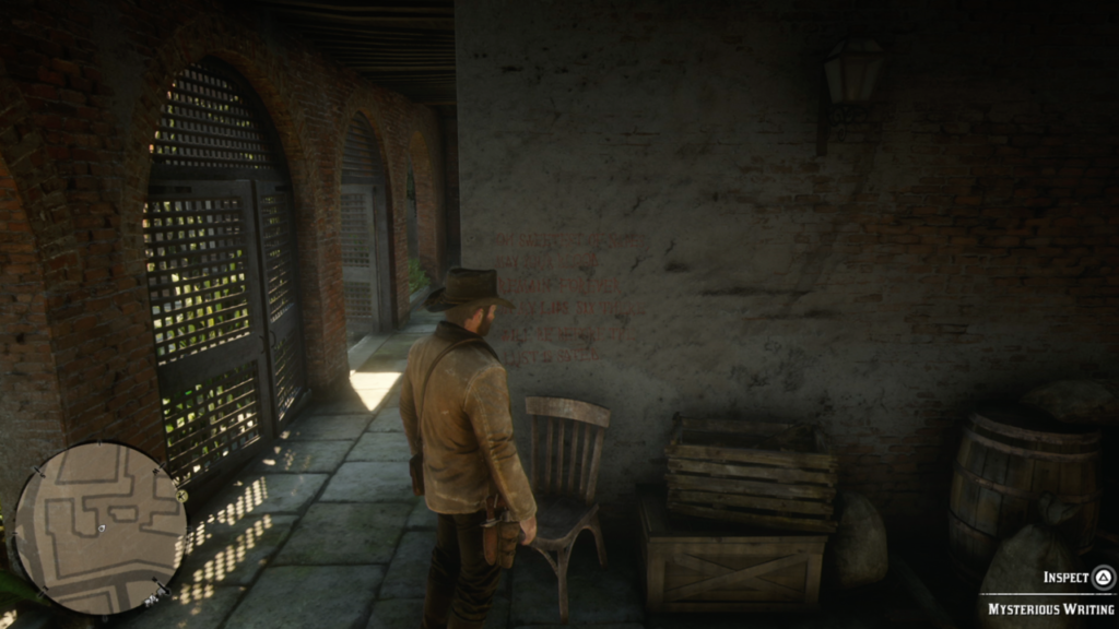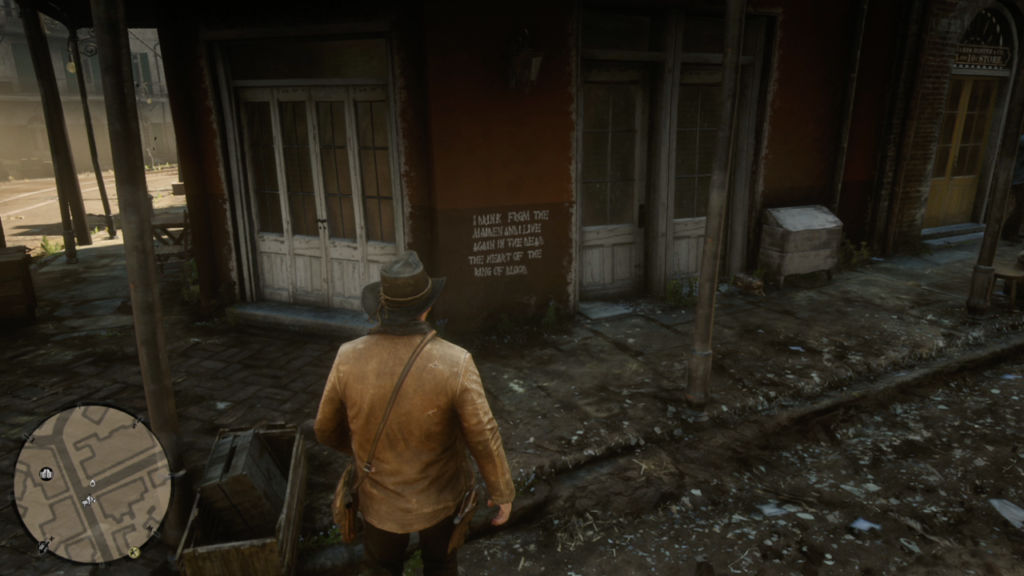 To keep you from getting spoiled, we’re going to be vague with the details of this discovery. It’s really worth seeing it through the end so you can experience it yourself. The objective of this mission is quite simple: find five mysterious writings scattered across Saint Denis. Once you’ve found all those, you’ll get a map that points you to an alleyway near the church in town. However, in order to trigger the event properly, you need to visit at night. If you really want to know what it is, hover your mouse over the text below:
