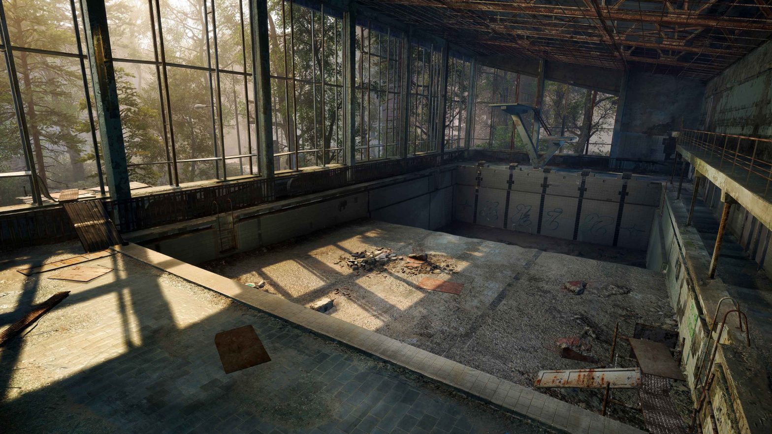 Ghost Town introduces a new map, the infamous Pripyat residential area overtaken by chernobylite crystals. It’s now a ghost town in which it’s easy to lose your way. You can explore its landmarks like the Azure Swimming Pool.