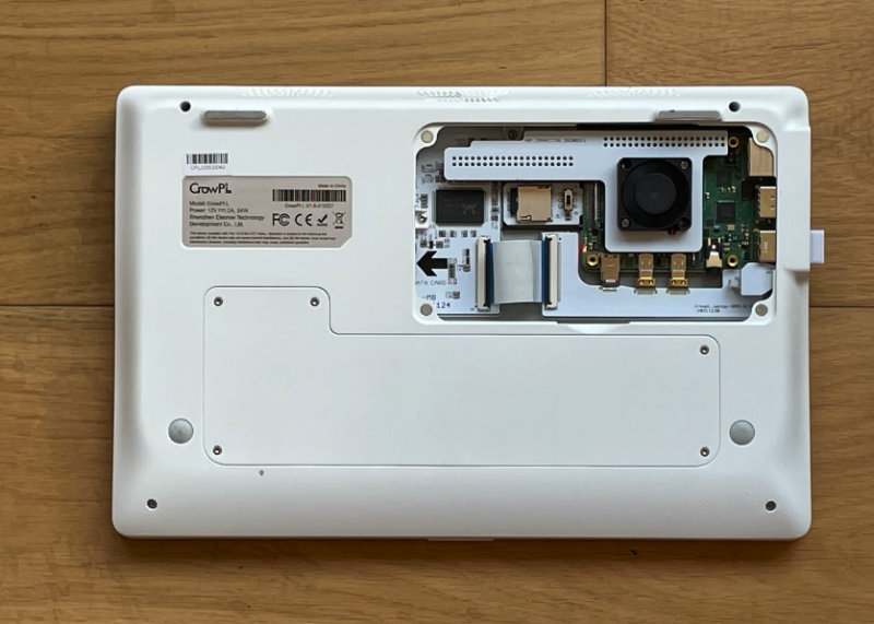 The design is a step forward. The white clamshell case features an 11.6-inch screen, chiclet-style keyboard, and a small touchpad repositioned in the top-right. Included is a 2.4GHz wireless mouse. Poor touchpads plague Raspberry Pi laptops; CrowPi L solves this problem by pushing the touchpad out of the way.