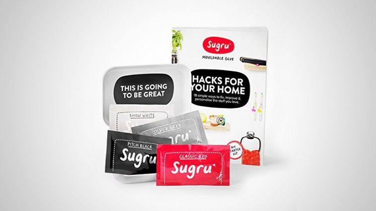 One of the brand’s starter packs, the Hacks for Your Home Kit, includes a guide booklet covering uses for Sugru around the home and a tin to keep the four included pouches of Sugru safe.