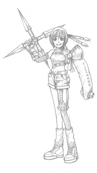 Tetsuya Nomura: I would say I was most particular about whether or not she looked her age. Yuffie is younger than the other main members, as she is still in her teens.