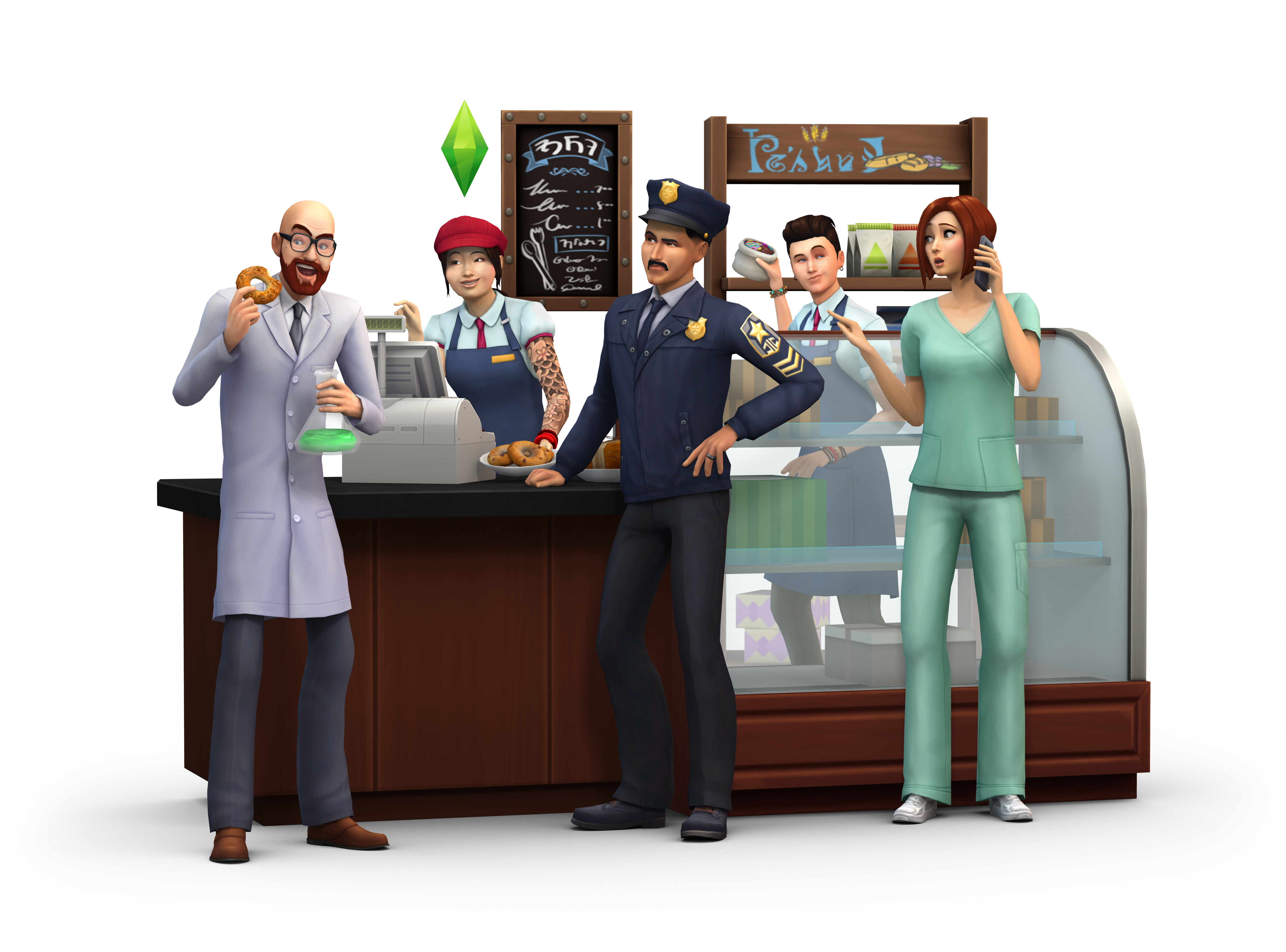 In Die Sims 4 An die Arbeit können Spieler als Arzt Leben retten und Babys zur Welt bringen, als Wissenschaftler verrückte Kreationen erfinden und herstellen oder als Polizist Tatorte untersuchen und knifflige Fälle knacken. Wer gerne unternehmerisch tätig werden möchte, kann einen eigenen Laden bauen, gestalten und führen. Von der Bäckerei und dem Kleidergeschäft über das Fotostudio bis zur Kunstgalerie und mehr haben Spieler in Die Sims 4 An die Arbeit die Möglichkeit, ihr eigener Chef zu werden und sich den Weg zum Simoleonär zu ebnen.