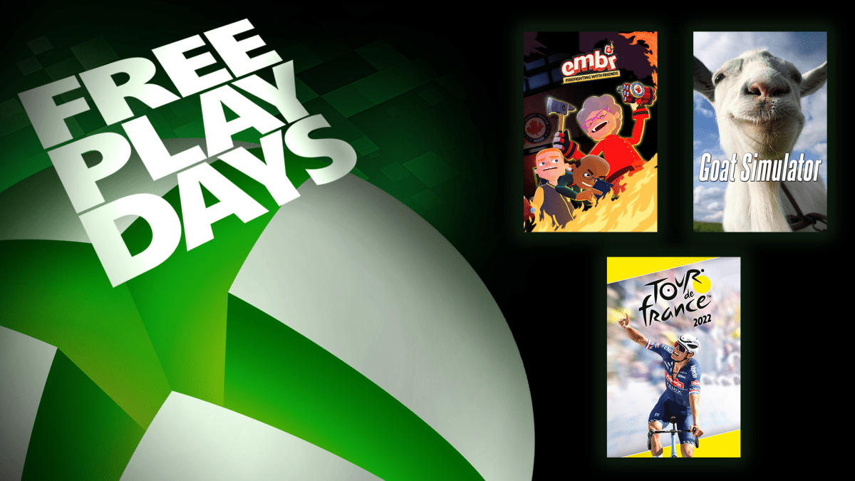Be a goat or compete to be the G.O.A.T. this weekend during Free Play Days. Embr, Goat Simulator, and Tour de France 2022 are available this weekend for Xbox Live Gold and Xbox Game Pass Ultimate members to play from Thursday, October 13 at 12:01 a.m. PDT until Sunday, October 16 at 11:59 p.m. PDT.