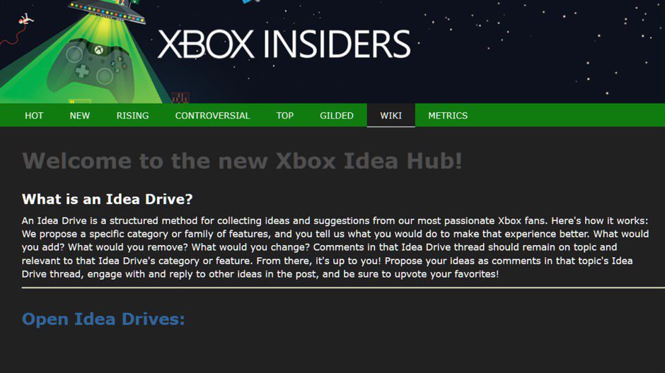 As a member of the Xbox Insider Program, we’d like you to lead the way by testing this site before we expand it to the broader Xbox community.  To get started, check out the new Xbox Idea Hub.  Then, contribute to our first Idea Drive in this space – it’s focused on renaming “Feature Friday,” like we said in the title. (Note: If you’re a regular reader of the subreddit, you probably already know about “Feature Friday.” If not, you can read about it in the Idea Drive post and then give us your ideas.)