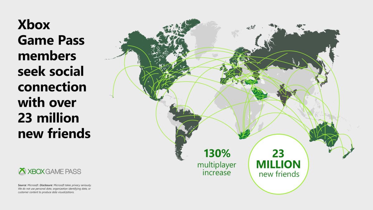 Since March, Xbox Game Pass members have added over 23 million friends on Xbox Live, which is a 70% growth in friendship rate. Game Pass members are also playing twice as much and engaging in more multiplayer gaming, which has increased by 130%.