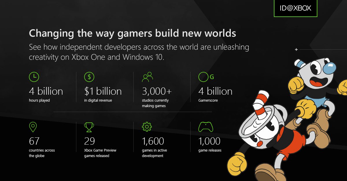 Das ID@Xbox-Programm erreicht einen neuen Meilenstein: 67 Länder auf der ganzen Welt, über vier Milliarden gespielte Stunden und mehr als eine Milliarde Dollar digitaler Einnahmen später freuen wir uns über 1.000 Titel, die im Rahmen des ID@Xbox-Programm veröffentlicht wurden. Darunter befinden sich unvergessliche Veröffentlichungen wie Studio MDHR’s Cuphead, Fullbright’s Tacoma, playdead’s INSIDE, Chucklefish’s Stardew Valley, Team17’s Overcooked 2 oder Dark Star’s Sinner: Sacrifice for Redemption.