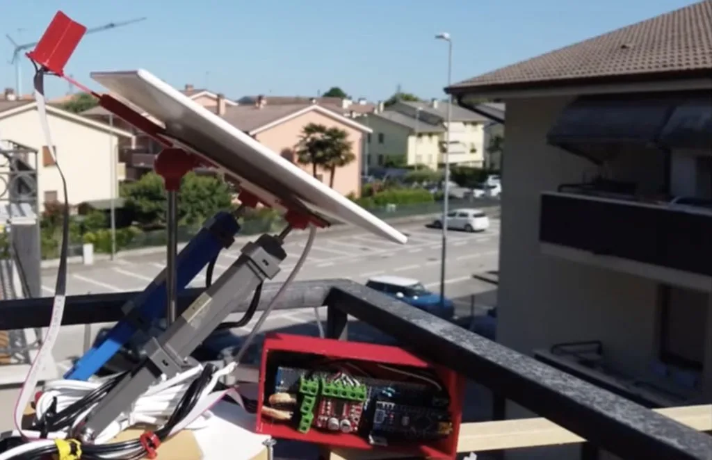 While a solar panel installed on the top of a roof, lamp post, or the side of a building will produce power, it is nowhere near optimal for achieving the maximum efficiency possible. To get better results, panels are often mounted to pivots and linear actuators/servo motors that continually move to always face the sun. But as Fulvio points out, these motors can be heavy and require extra batteries to function, which is what inspired him to create the mysoltrk to address this shortcoming. Fulvio built his “reinvented” tracker to be small, solid, and sturdy enough to survive outdoors on a balcony or any other space-constrained area like a garden.