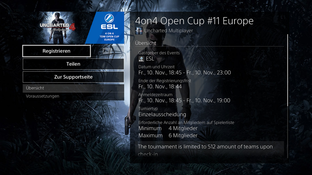 Mit diesem neuen Feature werden zu Beginn 2 Spiele unterstützt. Zum einen Uncharted 4 und zum anderen Mantis Burn Racing. Hierzu finden auch schon regelmäßige Turniere statt, bei denen ihr euch anmelden könnt.