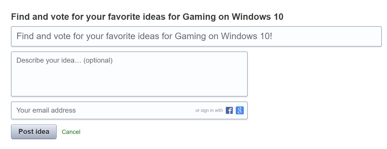 We’re actively reviewing all the great ideas you’ve submitted and adding them to the site. If you submitted an idea over the weekend, you can expect to see it by 5 PM PST today, Jan. 23. If you’d like to submit a new idea, you can check out the Gaming on Windows 10 Idea Drive and start typing an idea in the search bar to see if it’s been suggested already. If your idea doesn’t currently exist on the site, you’ll be given the option to post a new one.