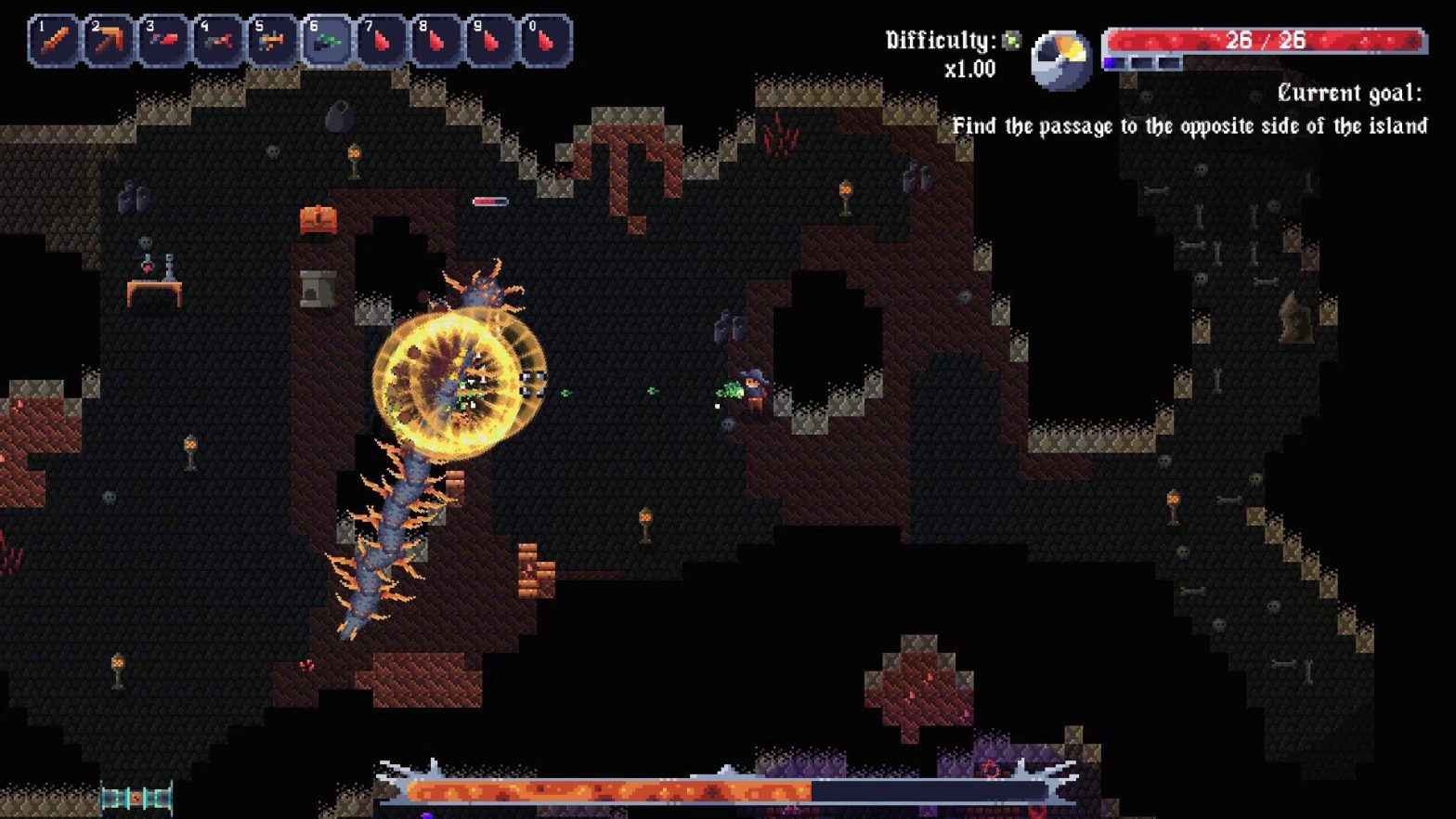 Du sitzt auf einer einsamen mysteriösen Insel fest und hast nur ein Ziel: von der Insel flüchten. Bewaffnet mit Deiner treuen Spitzhacke gräbst und hackst Du Dir Deinen Weg und stellst Dich wagemutig den unterschiedlichsten Monstern. Wird Dir die Flucht gelingen?