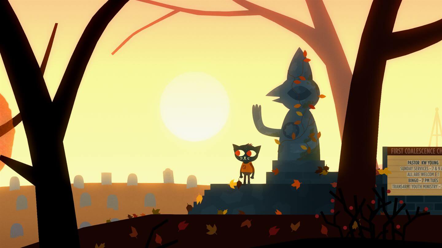 Night In The Woods is an adventure game where you explore a world and a story and a bunch of characters and people seem to like it. We hope you do too. It takes place in a town called Possum Springs, an Appalachian rust belt town full of secrets, citizens, and no shortage of closed storefronts. It concerns a woman named Mae who has just dropped out of college for reasons unknown and returned home. All she wants to do is rekindle her old life of petty vandalism and hanging out, but she finds things have changed while she was gone. The leaves are turning. The days are growing shorter, and the nights longer. And up past the burned-out basketball court at the edge of town, there’s something in the woods.