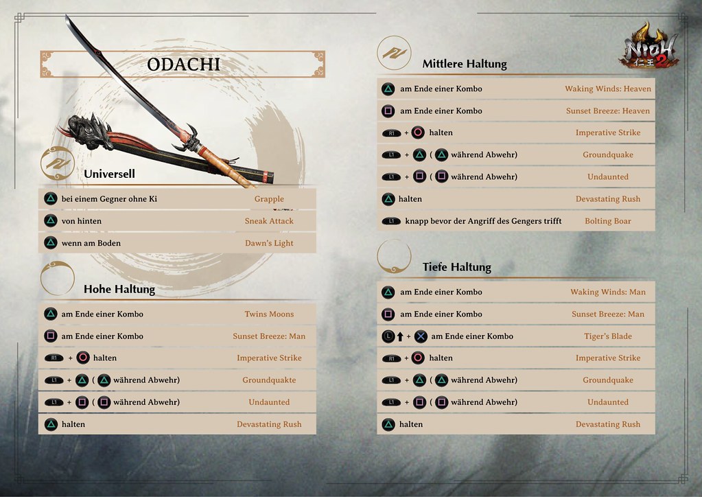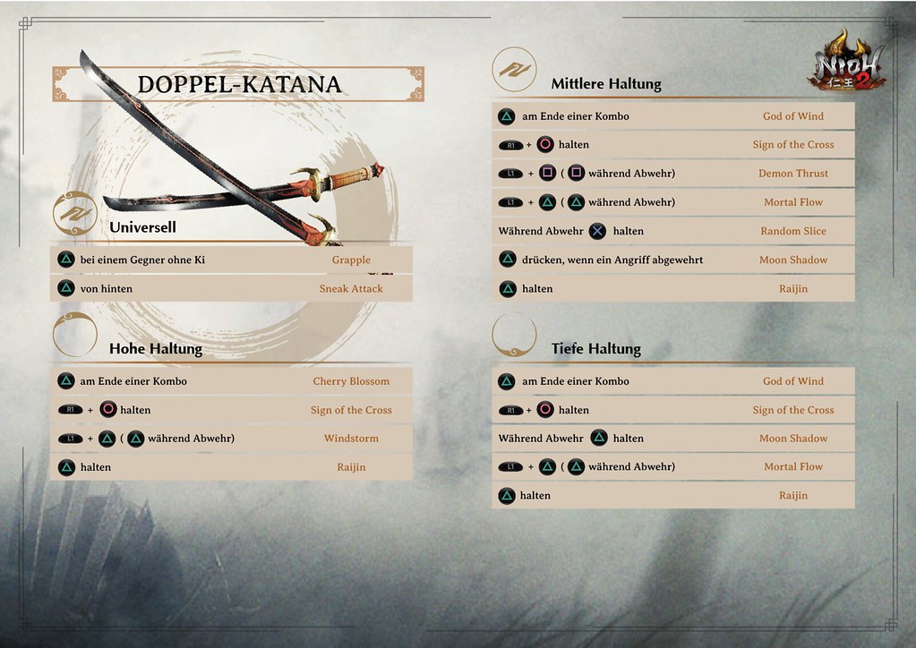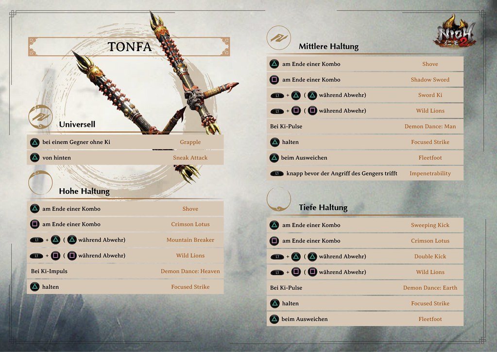 Nur so habt ihr eine Chance, den tödlichen Schlägen zu entgehen und als Sieger aus dem Kampf hervorzugehen. Damit euer Geduldsfaden nicht komplett reißt, haben wir ein paar Info-Grafiken erstellt, die alle Kombos zu den verschiedenen Waffen aufzeigen. So seht ihr auf einem Blick, wie ihr bestimmte Angriffe auslöst. Nutzt es als kleinen Spicker im nächsten Bosskampf und der Sieg wird euer sein!