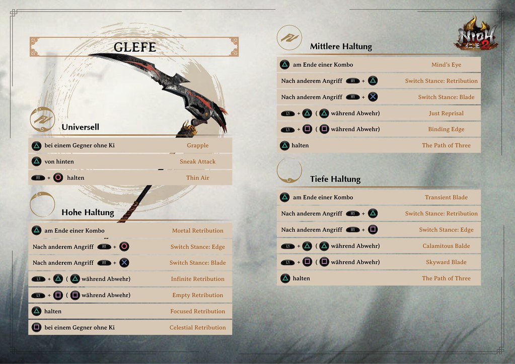 Die Glefe ist eine neue Waffe in Nioh 2. Wenn ihr schon immer mal wissen wolltet, wie es sich als Sensenmann so lebt, ist das eure Chance. Vor allem in hoher und mittlerer Haltung teilt sie ordentlich Schaden aus.
