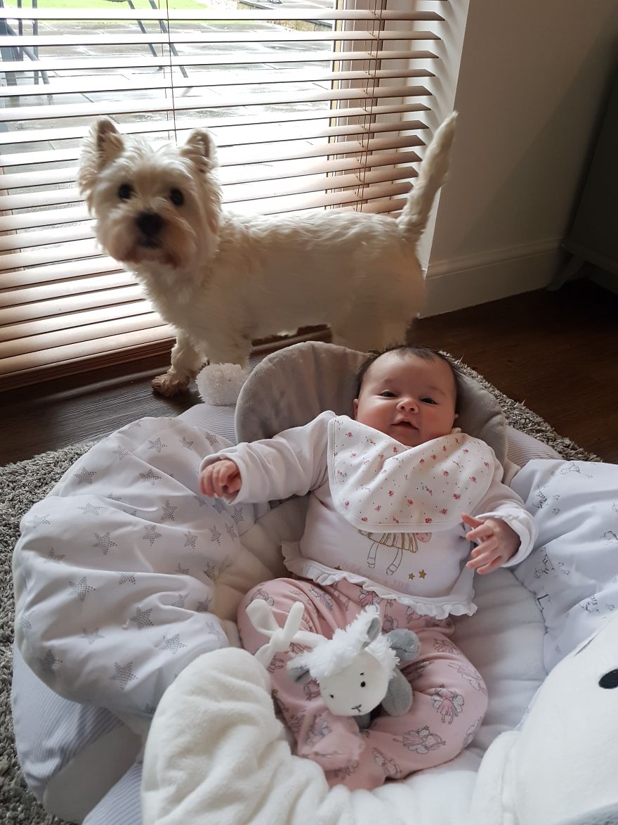 She is the best wee dog who had been very spoiled up to this point, so we didn’t want her to feel less important when the baby arrived!