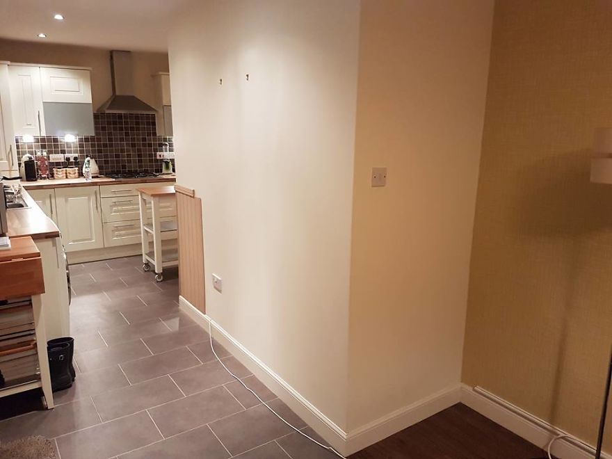 If it was going to work I also needed to move the wiring for the house alarm system. Decided to update the kitchen at the same time, by adding tongue & groove panels