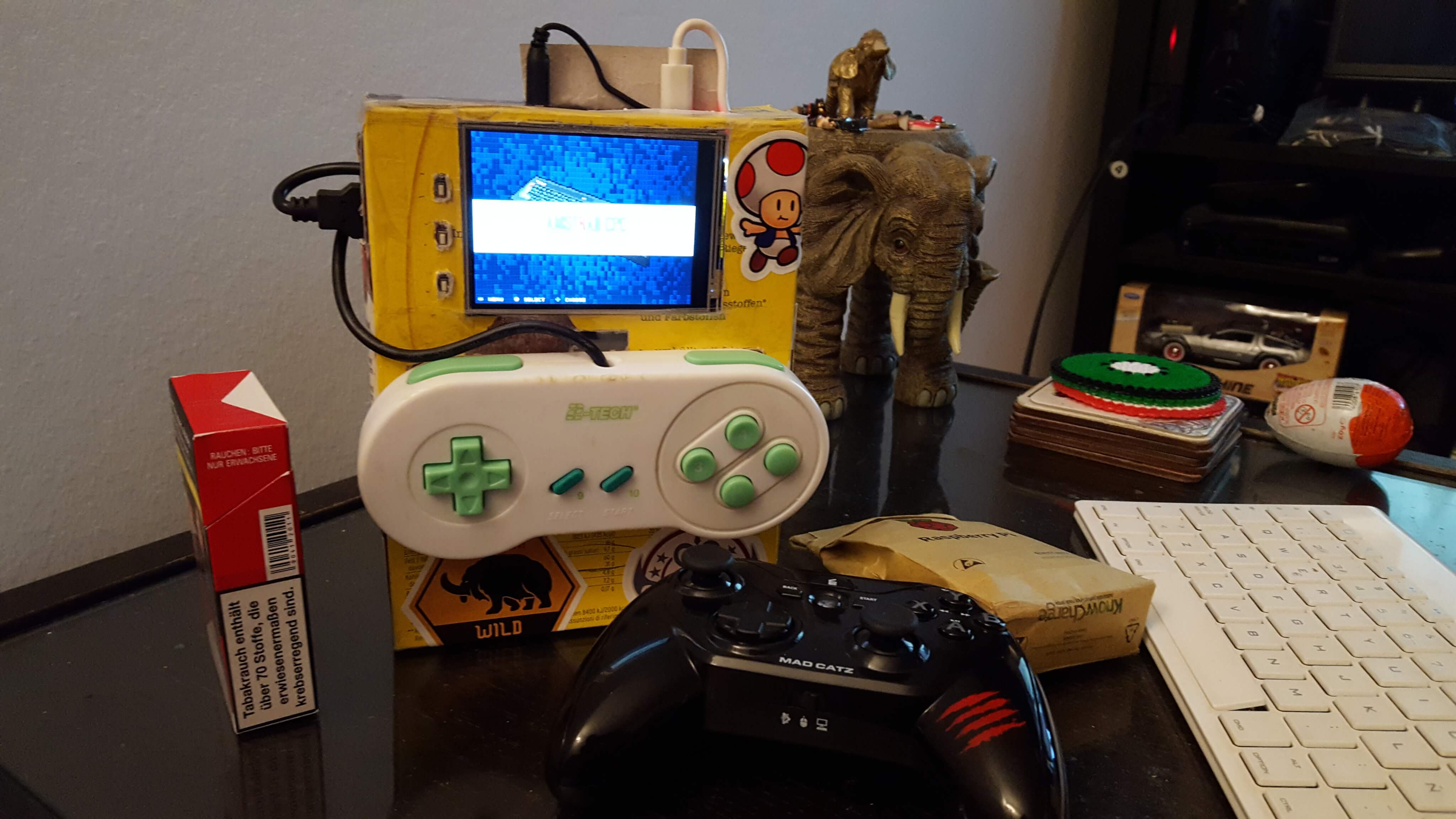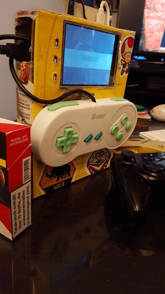 10€ – SNES Retro Usb Controller (you can choose the style we took an old one , laying around ) https://www.amazon.de/CSL-Gamepad-Controller-Notebook-Retro-Design/dp/B00HFQEFTY/ref=sr_1_2?ie=UTF8&qid=1484006798&sr=8-2&keywords=snes%2Busb%2Bcontroller&th=1