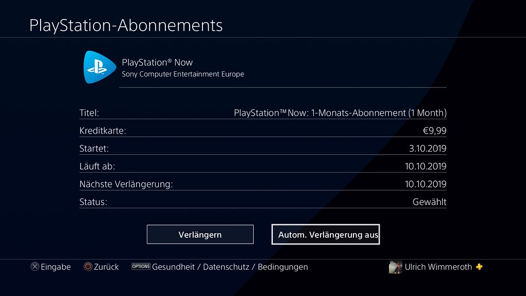 Tipp: Nach dem Ablauf des siebentägigen Testzeitraums wird ein kostenpflichtiges Abonnement aktiviert. Den Service könnt ihr aber jederzeit kündigen, in dem ihr die automatische Verlängerung ausstellt. Das machst ihr auf der PS4 unter Einstellungen – Konto-Verwaltung – Kontoinformationen – PlayStation-Abonnements.