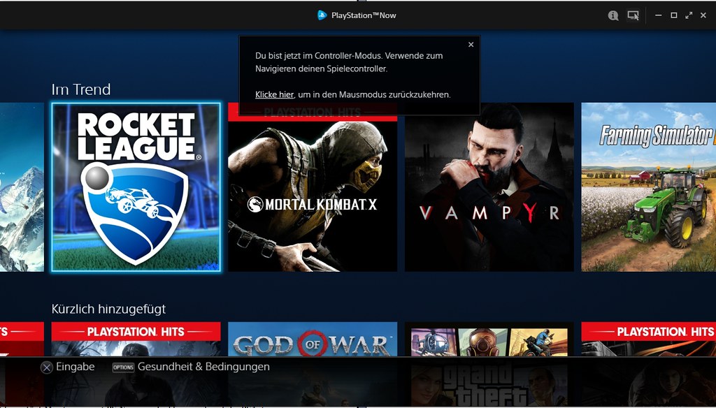 2. Bevor ihr richtig loslegen könnt, müsst ihr noch einen DualShock 4 Wireless-Controller oder ein kompatibles Eingabegerät mit dem PC verbinden. Windows erkennt den DualShock 4 sofort und über das Symbol oben rechts in der PS Now-App wird dieser aktiviert. Jetzt steht dem Zocken nichts mehr im Wege und ihr könnt dank Cloud-Speicherung der Spielstände auch einfach zwischen PS4 und PC hin- und herwechseln.