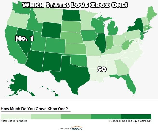 Xbox One is the clear winner with 22 states being in favor of the console, with the Playstation 4 just shy of 20 at a total of 19 states. There were also nine states that were complacent, or just simply tied between the two. Sadly, the Wii U scored zero states, getting less than half the likes each of its competitors received in all fifty states.