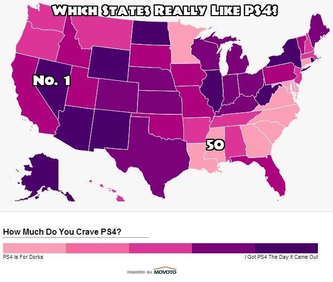 Despite the Playstation 4 having a sizable lead (in hardware sales) on the Xbox One and most especially the Wii U, lots of fans are still probably wondering where the popularity lies. Thanks to the folks over at Movato Real Estate, we’ve not only learned which console is arguably more popular (on Facebook), but what states prefer one over the other.