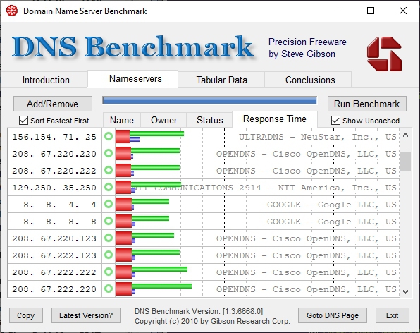 Zwischen den Angeboten für freie DNS-Server gibt es erhebliche Unterschiede in der Geschwindigkeit. Mit dem kostenlosen Tool DNS Benchmark könnt ihr euch nicht nur eine Liste aller verfügbaren Server anzeigen lassen, sondern auch gleich nach der Geschwindigkeit sortieren lassen. Einige Alternativen: