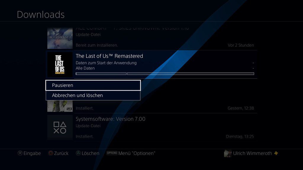 Downloads auf der PS4 kurz pausieren