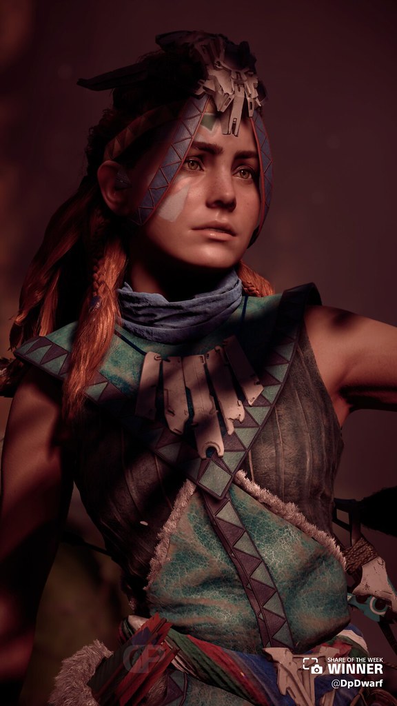 Even though it’s summer, Aloy wears the Banuk Ice Hunter armor set from Horizon Zero Dawn, as shared by @DpDwarf.