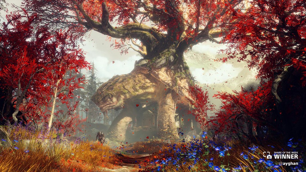 Kratos and Atreus take in the lush home of the Witch of the Woods, shared by @ayghan.