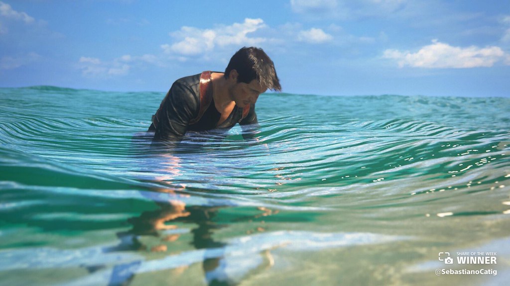 Not totally sure what Nathan Drake is doing, but he seems to be enjoying the water in this Uncharted 4 share by @SebastianoCatig.