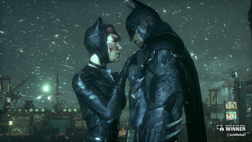 Batman and Catwoman cozy up in this Arkham Knight, shared by scottoka1.