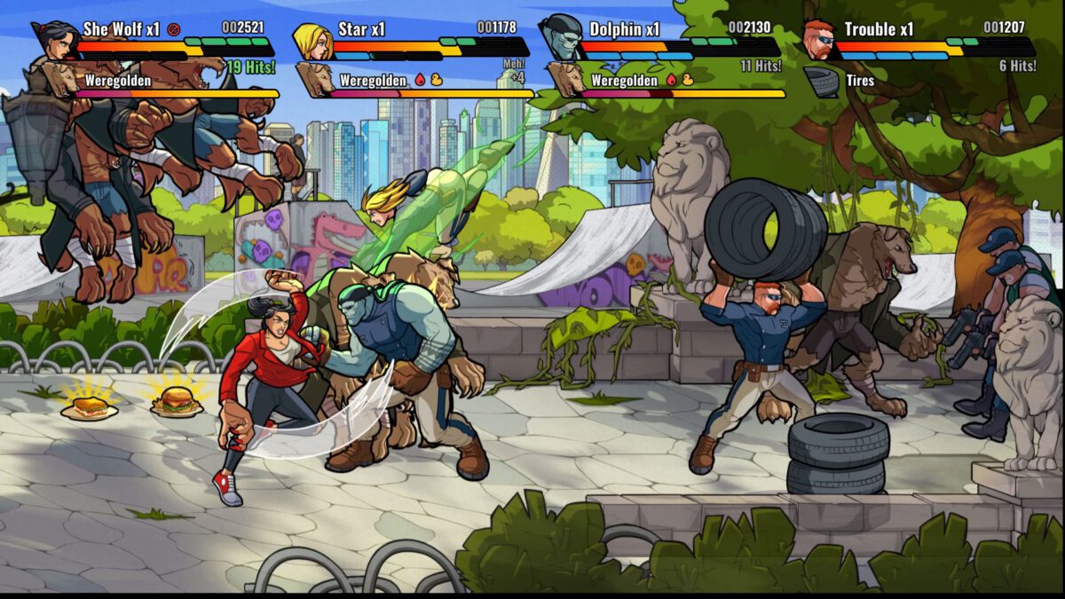 Finally, She Wolf joins the brawl as a playable character to wreak havoc in the city! Prepare to crunch on bad guys as you throw fiery kicks away to scorch them down. Seriously, how can we not include such a fan favorite on the roster? Players have constantly requested a playable lycanthrope; ideally, She Wolf herself. Our crew welcomed the idea since we plotted to bring one of the bosses as a playable character anyway. Along with She Wolf, the Wolfpack Update introduces the level selection, where you can practice stages or simply play your favorite levels. Arcade mode received a slight revamp as well. There will be no more story-related elements such as in-game dialogues, and a visible timer will be available in the bottom left corner of the screen. Gets your blood pumping! Finally, with the arrival of Mayhem Brawler’s fourth character, a four-Player mode will be available. Cowabunga!