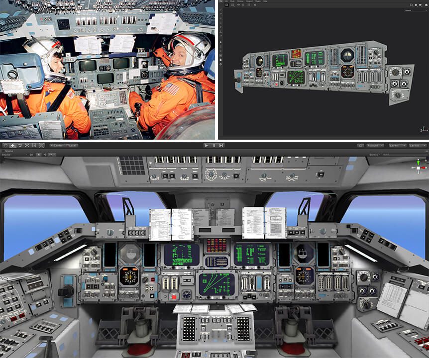 Thankfully, NASA is very transparent and open to sharing their data, providing the public with a massive database which spans decades of shuttle’s service. Schematics, images, camera footage and thousands of pages of operations manuals were extensively poured through to ensure we made as accurate a recreation as possible, building a solid foundation for our art, animation and audio departments begin their work.
