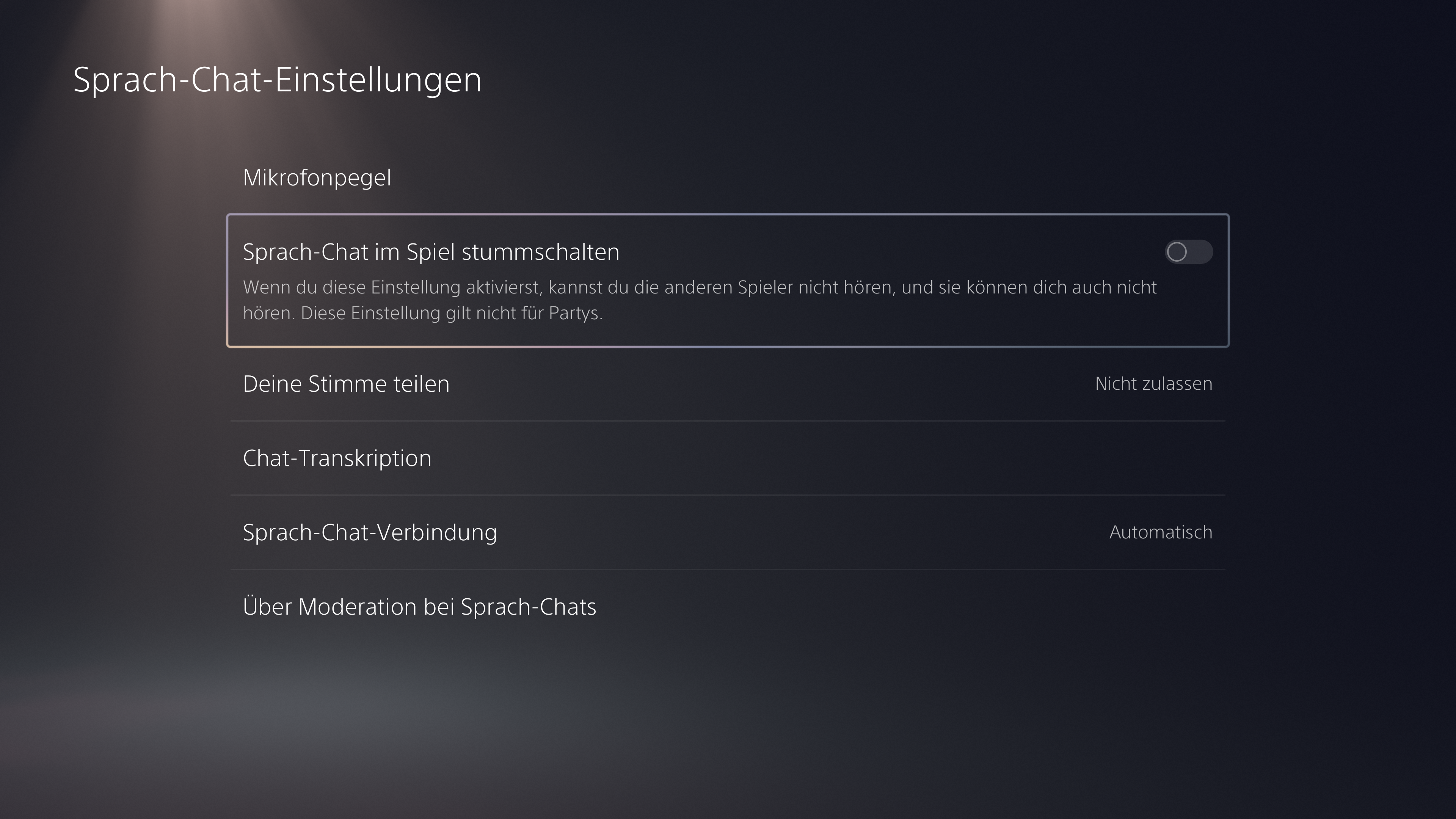 Jetzt lassen sich einfach einige wichtige Einstellungen vornehmen, wie zum Beispiel die Balance zwischen Game-Sound und Sprach-Chat optimieren, die Lautstärke anpassen oder den Chat verlassen. Klickt auf die drei Punkte rechts und ihr gelangt zur Übersicht aller Sprach-Chat-Einstellungen, in der ihr unter anderem den Mikrofonpegel anpassen könnt.