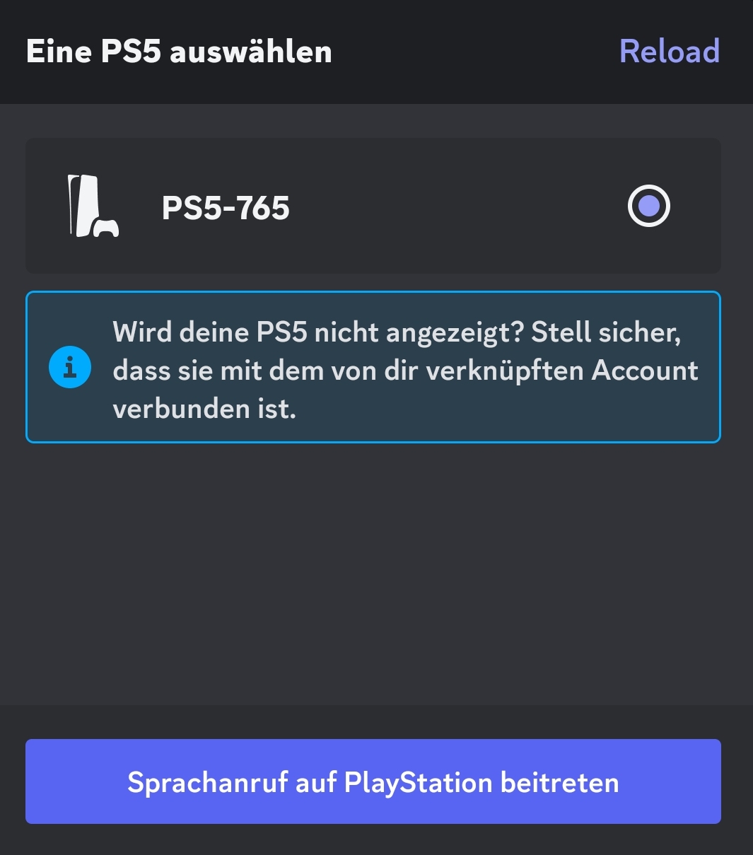 Öffnet eure Discord-App, meldet euch an und startet einen Sprachkanal oder tretet einem bestehenden bei. Wischt einmal nach oben und wählt Auf PlayStation beitreten aus. Auf dem folgenden Discord-Bildschirm wählt ihr eure PS5 aus und bestätigt mit der Schaltfläche Sprachanruf auf PlayStation beitreten.