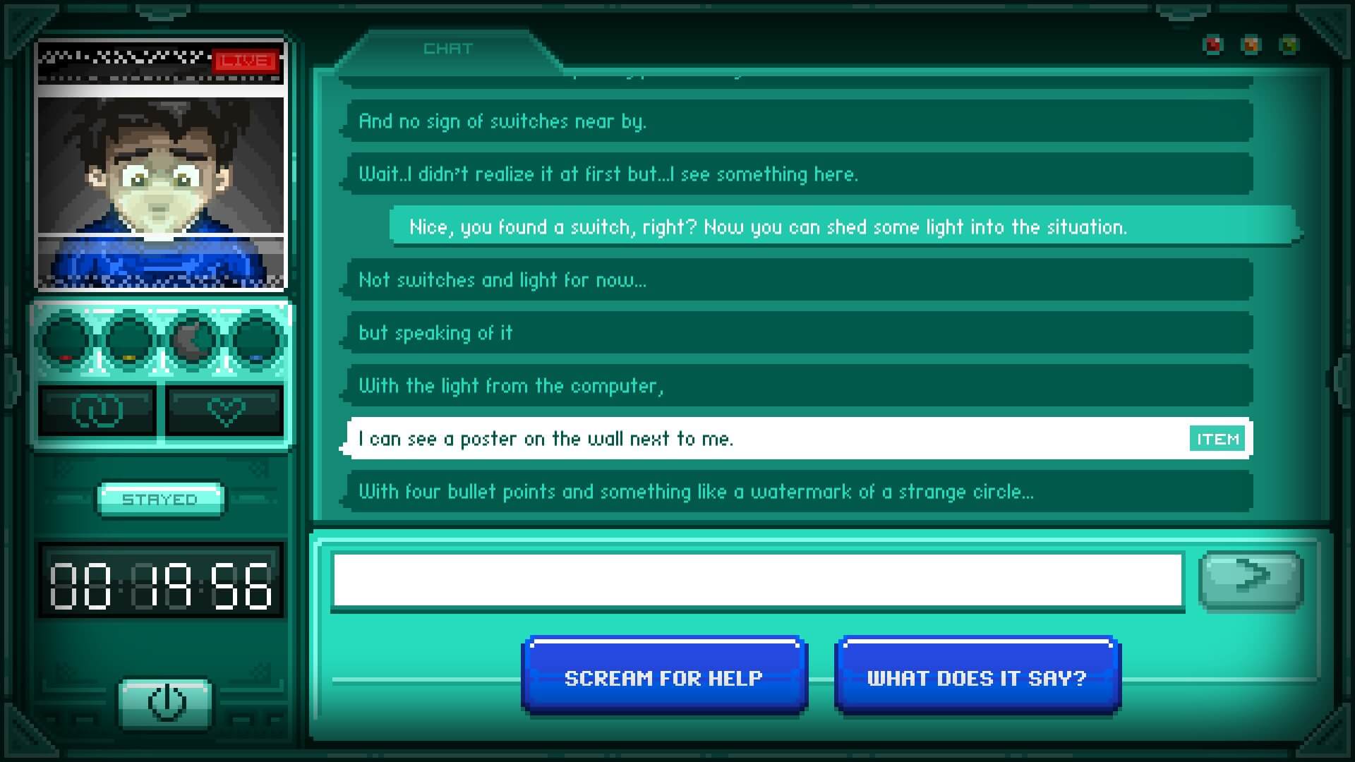 Stay takes place in real-time, so every second you spend in the chatroom is logged, as is every second you spend away from it (whether your Xbox One is switched off or you’re using it for other activities). Oh, and there’s the small matter of Quinn having been abducted and left abandoned in a dingy room, with seemingly nothing but a creaky old PC and an internet connection for company. What happens next is entirely down to you.
