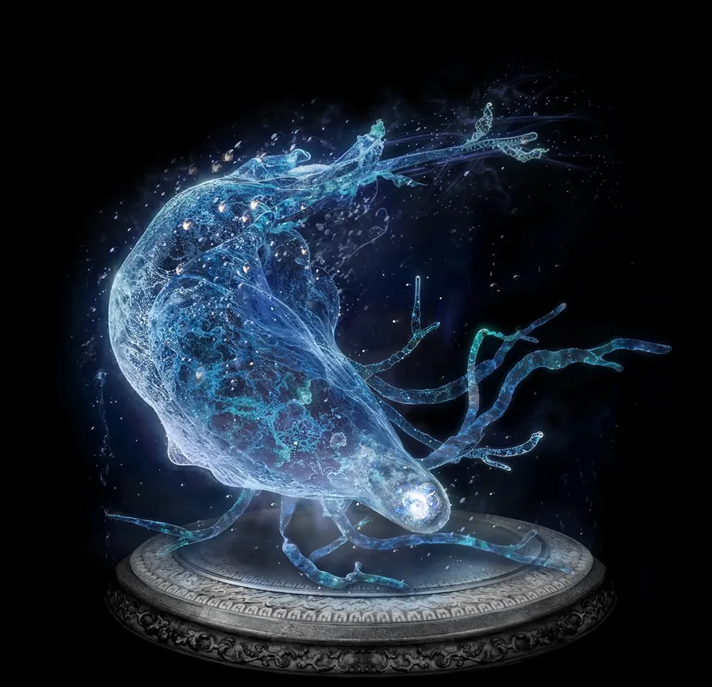 Our path then led us to an impossible realm – an endless, dark sea beneath a sky swirling with stars and nebulae. From the abyss rose Maris, Fathom of Night, a colossal, jellyfish-like being of pure cosmic energy, its form shimmering with starlight and dread.