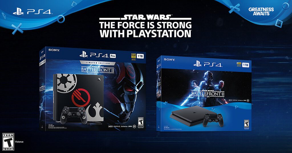 Whether you have yet to join the PS4 family, or simply want to add another Limited Edition console to your collection, we’ve got two new Star Wars Battlefront II bundles launching this month. Pre-order yours here. The Limited Edition bundle launching November 14 for $449.99 USD (MSRP) comes with a custom designed PS4 Pro, matching DualShock 4 wireless controller and the Deluxe Edition of the game. The Star Wars Battlefront II PS4 bundle launching on November 17 for $299.99 USD (MSRP) includes a Jet Black 1TB HDD standard PS4, DualShock 4 wireless controller and a copy of Star Wars Battlefront II Standard Edition.