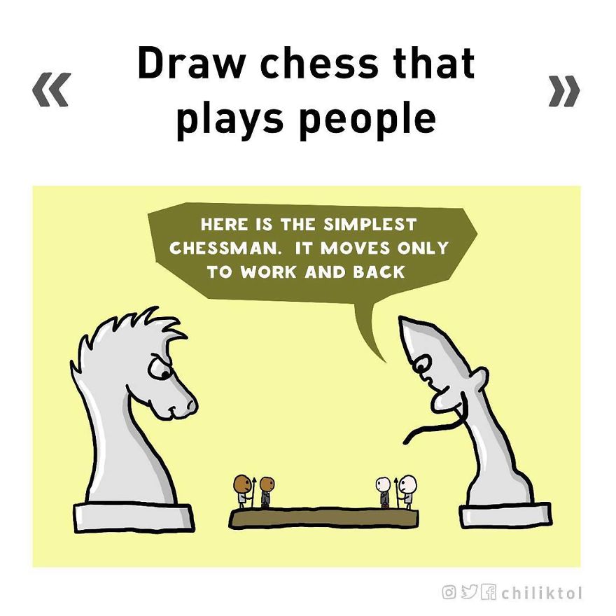 From reversing the roles of people and chess pieces to an Italian loneliness, most of these concepts are pretty abstract and give Chilik plenty to work with. And he delivers. Every. Single. Time. Scroll down to check out his humorous take on reality and vote for your favorite pieces!