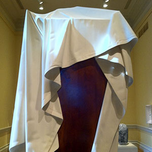At first glance it seems to be simply an old grandfather clock draped in a protective sheet