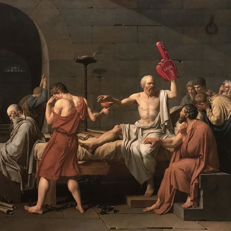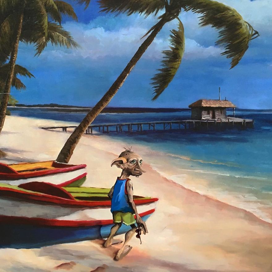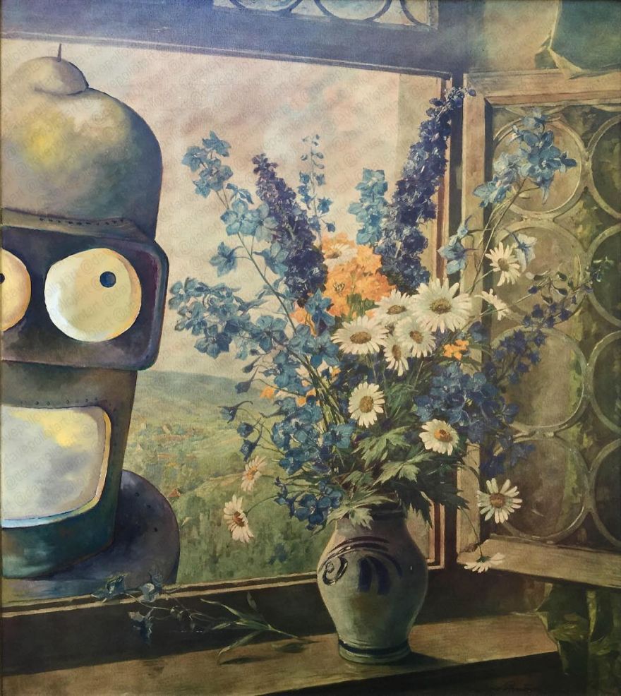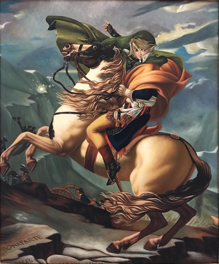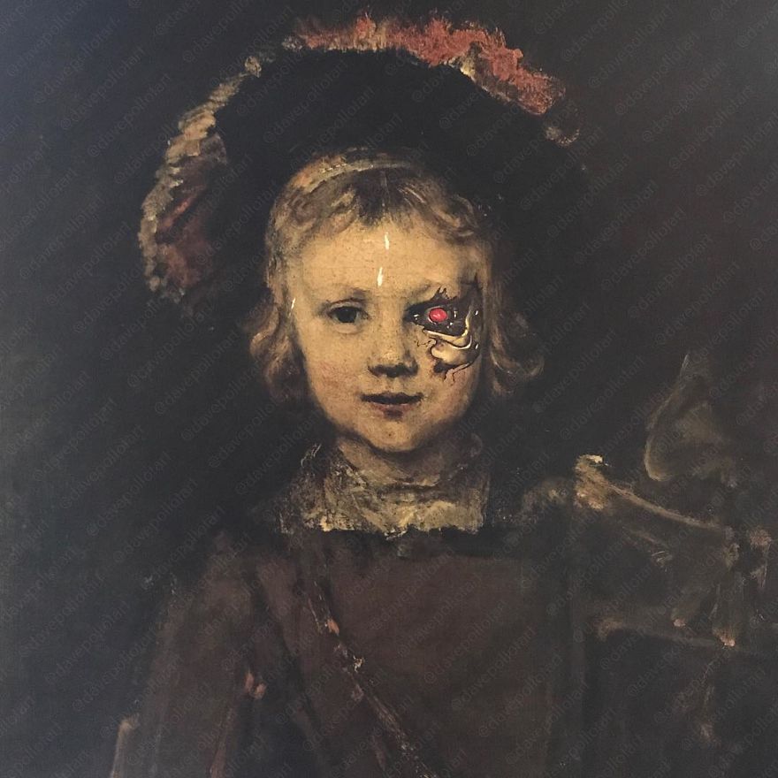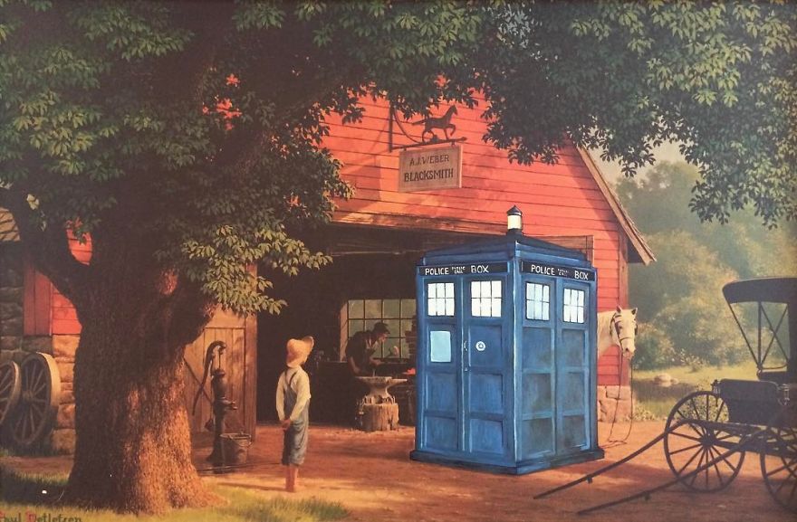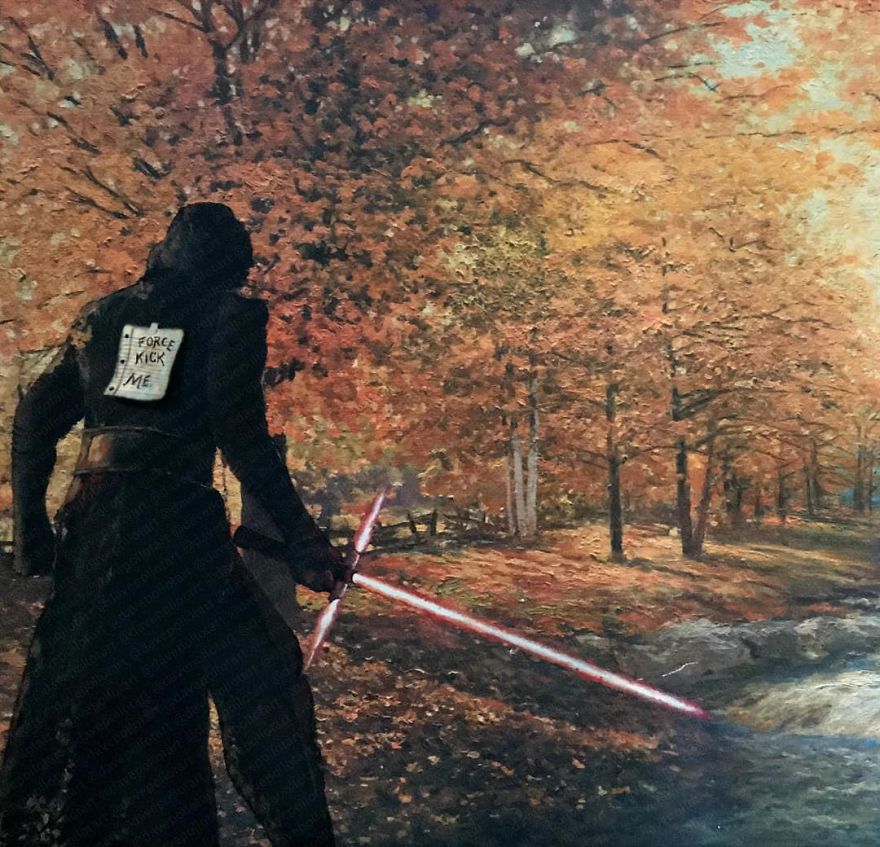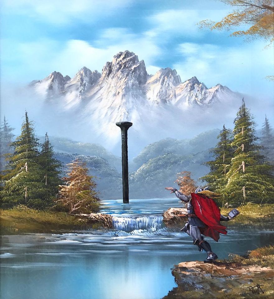 Dave Pollot (previously here and here) is a US painter who brings new life to old and forgotten art. He buys thrift store paintings and perfectly “enhances” them with pop culture symbols, giving a cool, nerdy spin to what’s dusting away inside cracked frames.