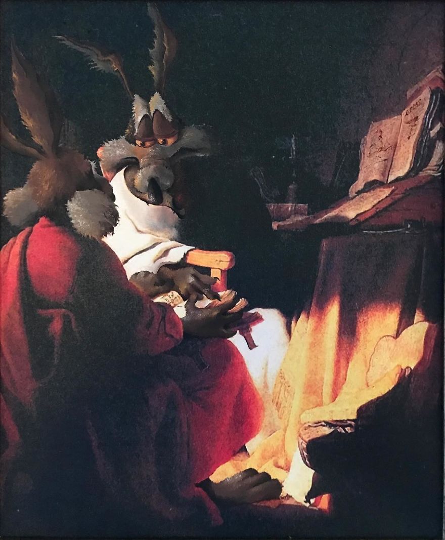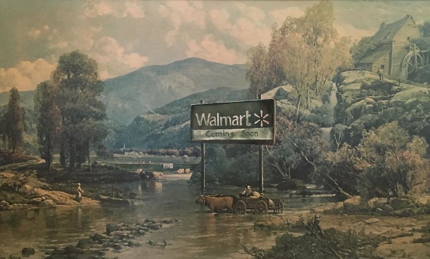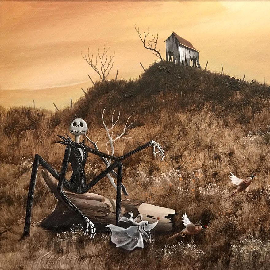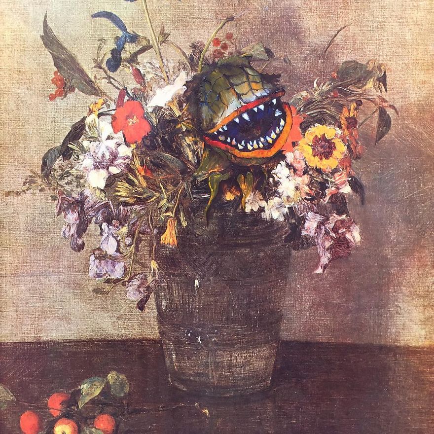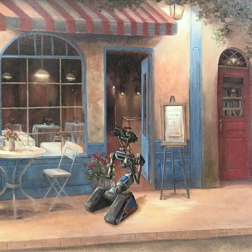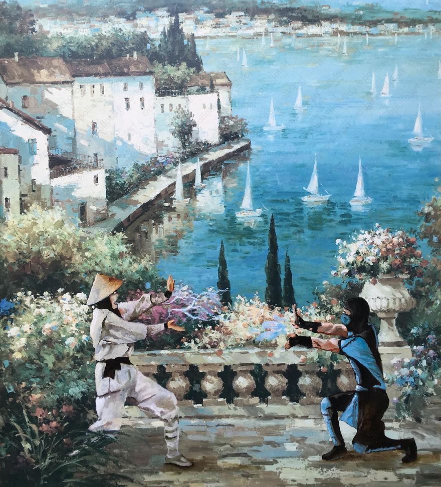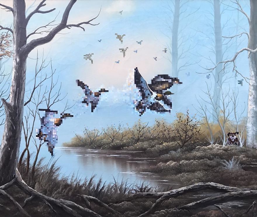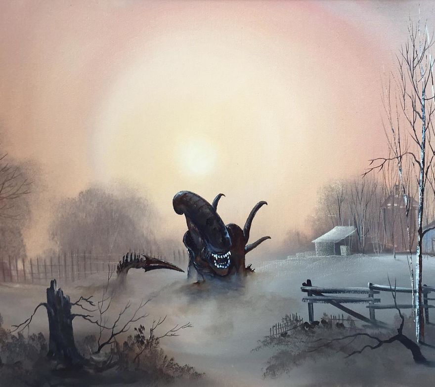 “Most are prints or lithographs,” he told Bored Panda. “Any scratches or marks are carefully touched up and then my own visions are added.” Before focusing on repurposing discarded thrift art, Dave painted more ‘serious’ architectural paintings and landscapes. Now, however, he’s completely devoted to his new passion.