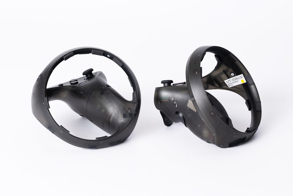 „Dies ist einer der frühesten Prototypen. Dies war ein Prototyp, um die Effektivität von adaptiven Triggern, haptischem Feedback und Fingerberührungserkennung in VR-Controllern zu testen. Das Tracking wurde durch die Kugel des PlayStation Move Motion-Controllers ermöglicht.“