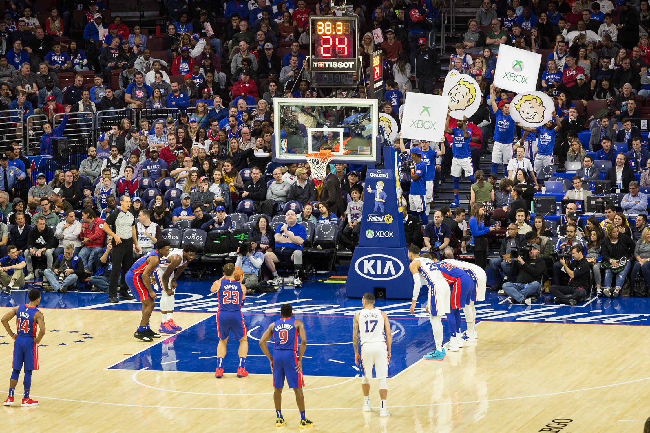 Game Takeover: Vault Boy also brought plenty of Luck to the Wells Fargo Center, as the Philadelphia 76ers held on to beat the Detroit Pistons 109 – 99. The in-arena signage, Xbox One Controller foam hands, courtside t-shirts, and Vault Boy big heads (which were used as distractors during opponent free throws) may have helped, too.